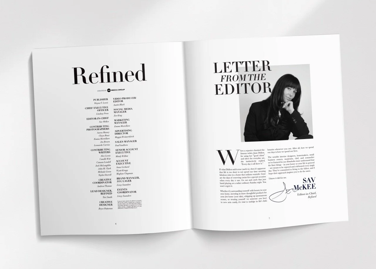 Refined is Columbus’s definitive guide to elevated living. Published quarterly and direct-mailed to 10,000 Central Ohio homes, Refined connects discerning readers and premium brands through thoughtful storytelling, sophisticated visuals, and a curated look at how to live well in Columbus.
